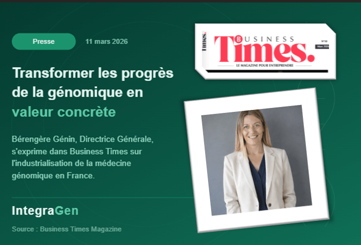 IntegraGen annonce la nomination de Bérengère Génin au poste de Directrice Générale